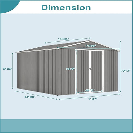 Metal Shed10x12 ft Outdoor Storage Shed,Metal Steel Utility Tool Shed Storage House with Double Lockable Doors and Air Vent for Backyard Garden Patio Lawn Gray