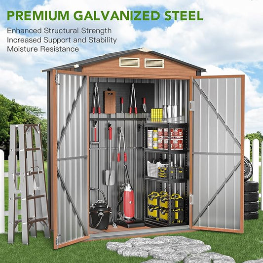 AECOJOY 6' x 4' Storage Shed, Metal Sheds & Outdoor Storage Clearance, Utility and Tool Garden Shed with Lockable Doors for Backyard, Patio, Outside Use