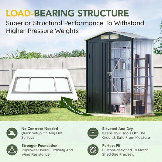 5x3X6.3FT Outdoor Steel Storage Shed with Lockable Doors and Frame Floor, Compact Small Bike Shed, Ideal for Garden, Backyard, Swimming Pool, Patio Utility and Tool Storage