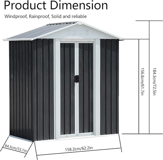 Ball & Cast 5x3FT Outdoor Storage Shed with Punched Vents,Heavy Duty Metal Sheds with Sliding Doors & Padlock,Waterproof Tool Sheds for Garden,Backyard,Lawn,Easy to Assemble,Grey