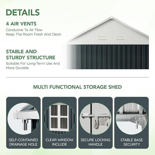 8X6FT Outdoor Steel Storage Shed with Lockable Doors, Frame Floor (No Wood/Other Boards),One Window,Ideal for Garden, Backyard, Patio Storage