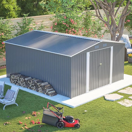 AECOJOY 12' x 14' Outdoor Storage Shed with Sliding Door, Outdoor Sheds & Outdoor Storage Clearance Backyard Shed Storage Cabinet, Large 14x12 Metal Storage Tool Shed