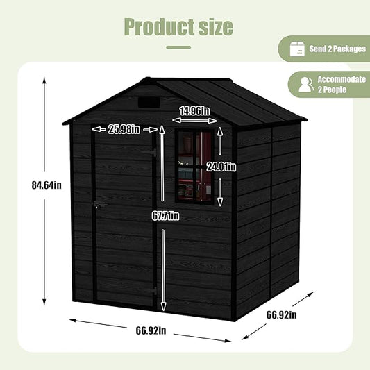 Outdoor Storage Shed 6x6 FT, Resin Shed with Floor, Waterproof Plastic Garden Bike Shed with Lockable Door, Sloped Roof, Vents & Windows, Tool Shed for Patio, Backyard, Lawn (Wood Grain Black, 6X6ft)