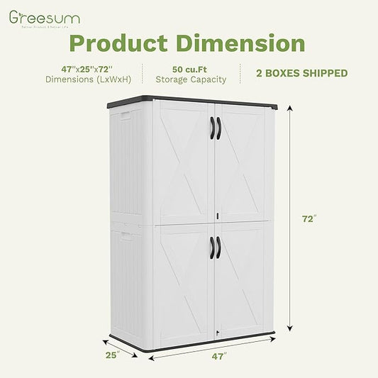 Greesum Outdoor Storage Cabinet, 50 Cu.Ft Deck Box Without Shelves, Waterproof Plastic Storage Bin for Patio Cushions, Gardening Tools, Lockable and Sidehandles, UV Resistant, White