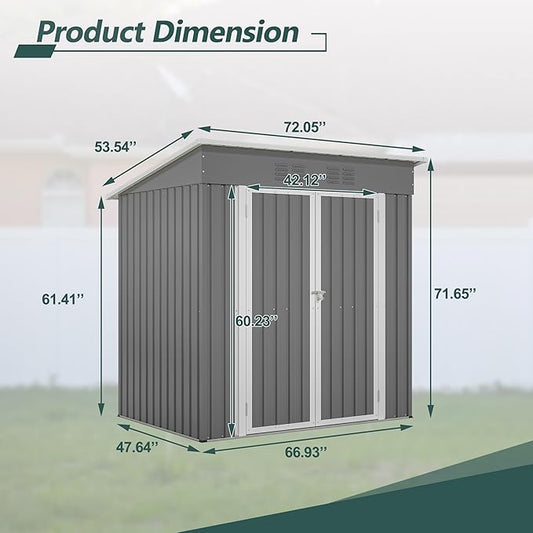 6x8FT Outdoor Metal Storage Shed, Double Door, 1 Clear Window, Tool Shed for Garden, Patio, Backyard