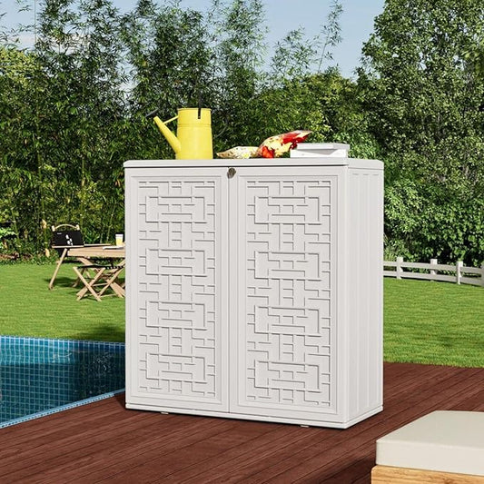 Resin Outdoor Storage Shed, Outdoor Storage Box Waterproof for Garden Tools, Patio Furniture, Trash Cans, Garage Storage, Lockable