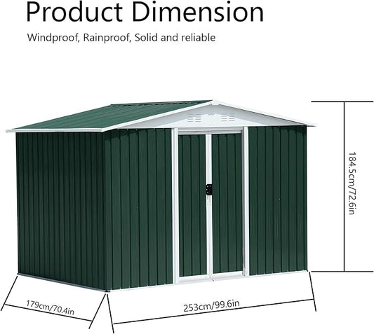 Ball & Cast 8x6 FT Outdoor Storage Shed, Garden Metal Sheds with Punched Vents and Sliding Door, Clearance Tool House with Aluminum Frames and Sloped Roof for Backyard Patio,Green