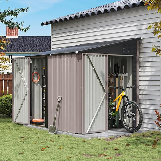 Aoxun 7x5 FT Lean to Shed Garden Metal Storage Shed with Lockable Doors Outdoor Bike Shed for Backyard, Patio, Poolside (Brown)