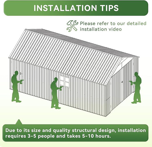 Aoxun 12x20x9.3 FT Shed Outdoor Metal Garage Shed 1700 CUFT Extra Large Storage Shed for Vehicles & Sundries 11" Snow Load Double-Door All-Weather Garden Shed (Brown)