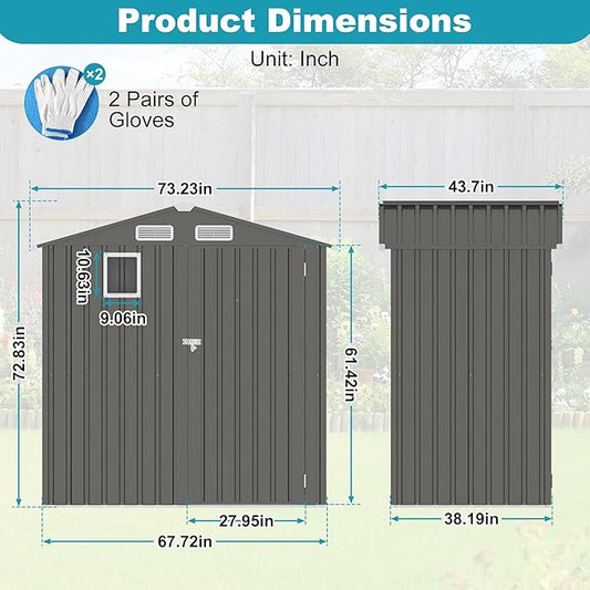 6X5 FT Outdoor Storage Shed, Waterproof Metal Garden Sheds with Lockable Door, Steel Tool Storage Buildings Shed & Outdoor Storage House for Garden, Backyard, Patio, Lawn, Trash Cans(Gray)