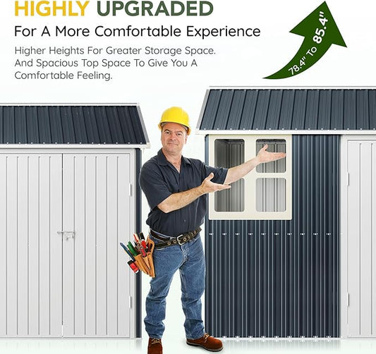 8x6 FT Outdoor Storage Shed with Floor & Lockable Double Doors, Heavy-Duty Galvanized Steel Outdoor Metal Shed for Bike, Tool, Generator Storage in Backyard, Patio (8’x6’, Floor)
