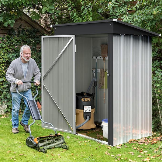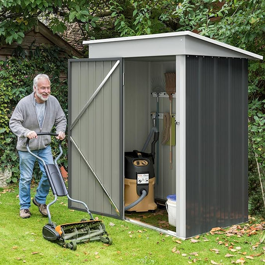 GUNJI 5 x 3 FT Shed Outdoor Storage Shed Metal Garden Shed with Lockable Door Outside Waterproof Tool Shed for Backyard, Patio, Lawn (Gray)