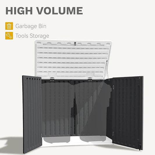 Aivituvin Outdoor Storage Cabinet Trash Can Storage Shed Upgraded with Metal Frame for Garbage Can, Gardening Tools and Accessories 50" L x 27.6" D x 41" H