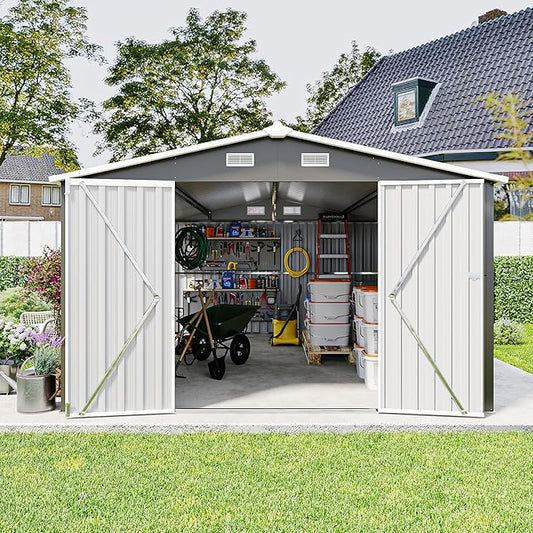 10X12 FT Outdoor Steel Storage Shed with Lockable Doors, 2 Windows, Garden Shed Ideal for Backyard, Patio Storage,Chicken Coop(Wood Panels & Frame Floor Not Included)