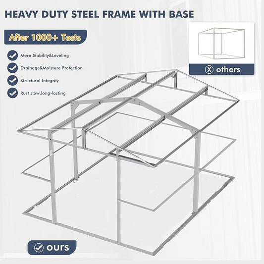 Restland 10x12 FT Metal Storage Shed Reinforced Frame Outdoor Shed with Clear Roof, Air Vent & Lockable Door Large Garden Tool Storage Sheds for Backyard, Garden, Lawn