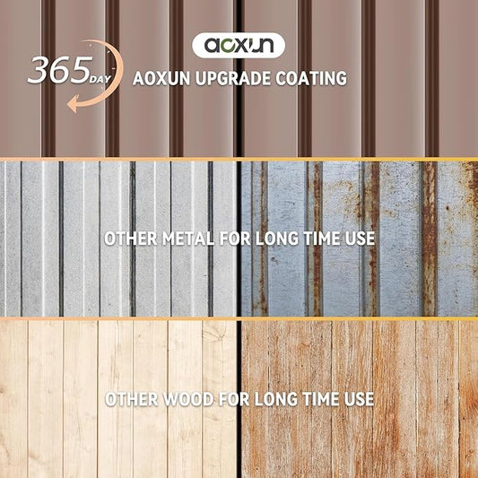 Aoxun 8' x 6' Storage Shed with Base Outdoor Steel Garden Utility Cabinet with Lockable Door Waterproof & Rust-Proof for Yard, Patio, Backyard (Brown, Base Included)