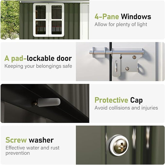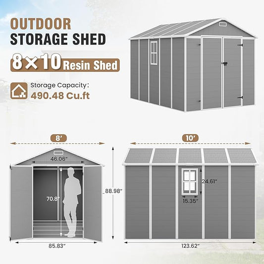 Domi 8x10FT Resin Outdoor Storage Shed with Lockable Door, Waterproof Outside Sheds with Windows & Vents, Heavy-Duty Plastic Tool Storage Shed for Patio Furniture, Lawn Mower, Bike