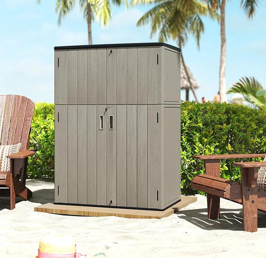 HOMSPARK Outdoor Storage Shed Weather Resistance, Patio Storage Cabinet Lockable Resin Tool Shed for Storage of Bike, Trash Cans, Garden Tools (Shallow Coffee, 66 Cu.ft)