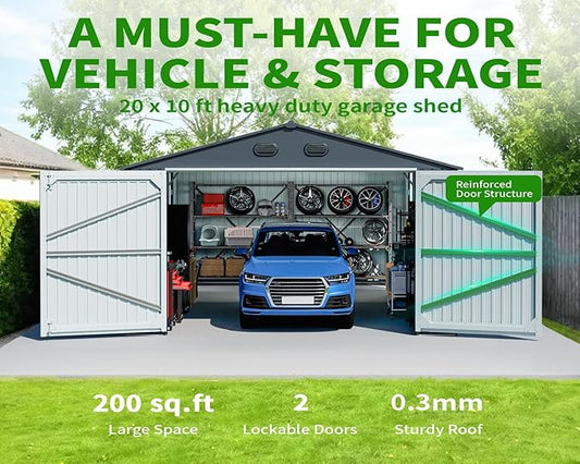 20 x 10 FT Outdoor Storage Shed, Large Metal Garden Shed with 2 Lockable Doors, Tool Shed Outdoor Storage with 4 Air Vents, Garage Shed Waterproof for Car, Truck, Bike, Garbage Can, Tool, Dark Gray