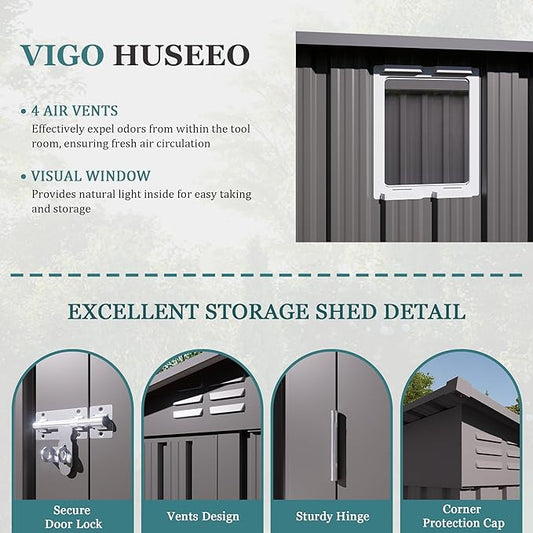 4 * 9.2 * 6 FT Outdoor Storage Shed, Galvanized Steel Garden Shed with Lockable Door & Window, Waterproof Metal Tool Storage for Garden, Backyard, Patio, Lawn(Gray)