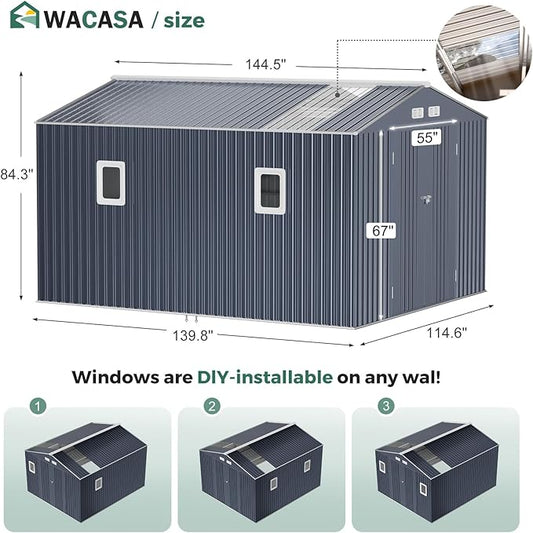 Metal Shed 10x12 Reinforced Sheds Outdoor Storage, Natural Lighting Tool Sheds with Translucent Roof Panels, Windows, and Lockable Doors, Ideal for Garden, Backyard, and Patio