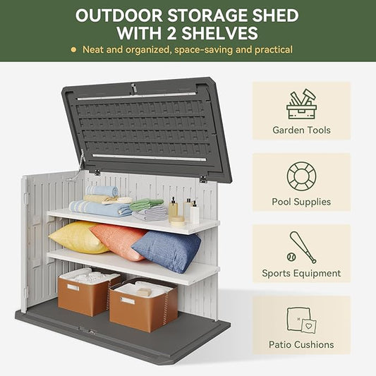 Devoko Resin Outdoor Storage Shed 34 Cu Ft Horizontal Outdoor Storage Cabinet Waterproof Patio Tools Storage Box for Sofa Cushion, Lawn Mower and Garbage Cans