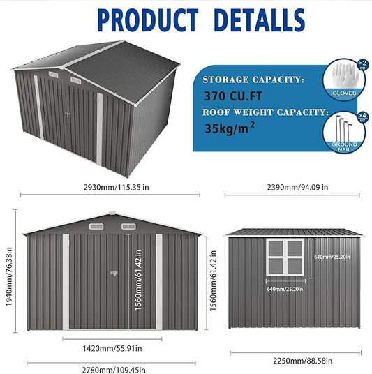 Domi Outdoor Storage Shed 11’ x 9’, Metal Sheds with Galvanized Steel Frame & Windows & Lockable Door, Garden Shed Tool Storage Room for Patio(Dark Gray)