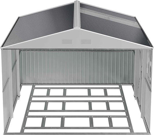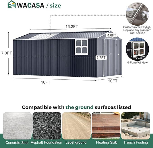 Metal Shed 10x16 FT Big with Heavy-Duty Reinforced Steel Frame and Customizable Skylight, Lockable Doors, 4-Pane Windows, Large Outdoor Storage for Garden, Tools, and Utility