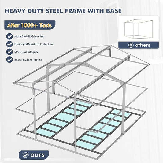 Restland 10x12 FT Outdoor Storage Shed with Floor Base Frame Metal Garden Shed with Clear Roof, Air Vent & Lockable Door Large Tool Storage House for Backyard, Garden, Lawn