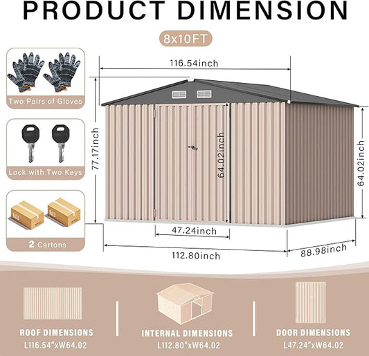 8x10 FT Metal Storage Sheds Outdoor, Metal Yard Sheds Garden Shed Kit, Tool Shed with Lockable Door, Utility Sheds Buildings with Air Vent for Backyard Garden Patio Lawn