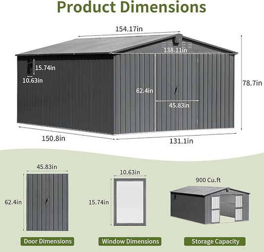 KEIKI 12FT x 10FT Heavy-Duty Metal Storage Shed, Outdoor Storage Shed with Floor & Window and Lockable Doors, Weatherproof Outdoor Garden Shed for Garden, Backyard, Patio, Lawn