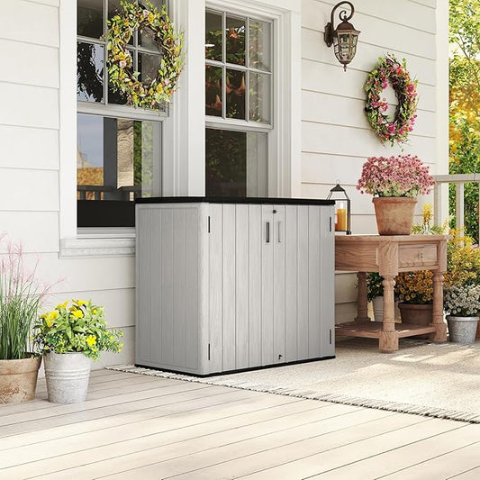 Outdoor Patio Storage Shed,Waterproof Horizontal Outdoor Storage Cabinet for Garbage Cans,Tools and Lawnmower Lockable(34 Cu.ft-Warm-White)