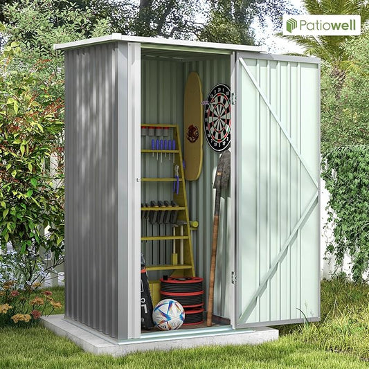 Patiowell 3 x 3 FT Outdoor Storage Shed,Small Garden Tool Storage Shed with Sloping Roof and Single Lockable Door, Outdoor Shed for Backyard Garden Patio Lawn, Grey