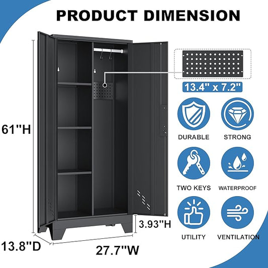 61" Outdoor Storage Cabinet, Heavy-Duty Metal Lockable Storage Cabinets with Ventilated Doors & Pegboard Hooks, Linen Storage Cabinet for Garage, Bathroom & Kitchen, Easy Assembly
