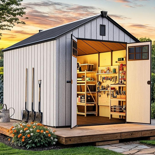 YITAHOME 8x10 FT Outdoor Storage Shed with Floor, Plastic Garden Shed for Bikes, Tools, and Pool Supplies, Outdoor Resin Shed with Lockable Doors, Windows, and Vents for Patio, Lawn, Backyard, Gray