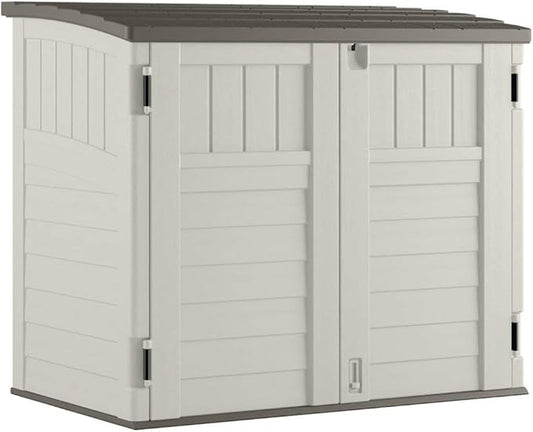 Suncast 4 Pack 34 Cu Ft Capacity Horizontal Outdoor Storage Shed for Garbage Cans, Garden Accessories, Backyard, and Patio Use, Vanilla