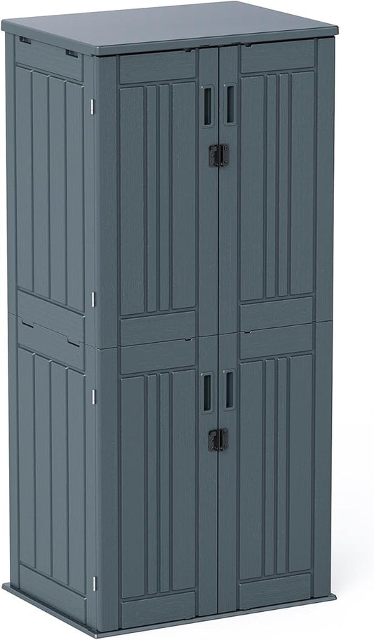 30 Cubic Ft. Vertical Resin Outdoor Storage Shed with Lockable Double Doors,Tall Storage Cabinet with 4 Shelves, Weather-Resistant Multi-Wall Panels,Storage Shed for Patio, Garden, Yard, Grey