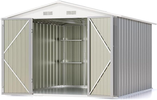 Domi Outdoor 10' x 8' Storage Shed, Metal Steel Utility Tool Shed Storage House with Double Lockable Doors & Air Vents for Backyard Patio Garden Lawn Brown