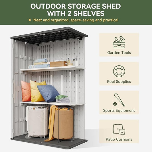 Patiowell Plastic Outdoor Storage Shed, 5 x 3 FT Patio Storage Shed Cabinet with Stable Roof & Lockable Doors Waterproof Resin Shed for Tools, Patio Furnitrue Accessories, Dark Gray