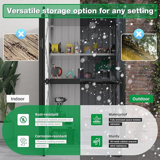 AECOJOY Large Outdoor Storage Cabinet Waterproof with Shelves, Lockable Vertical Outdoor Cabinet, Large Storage Shed Tall Weatherproof Cabinets Garden Sheds & Outdoor Storage Clearance in Dark Grey