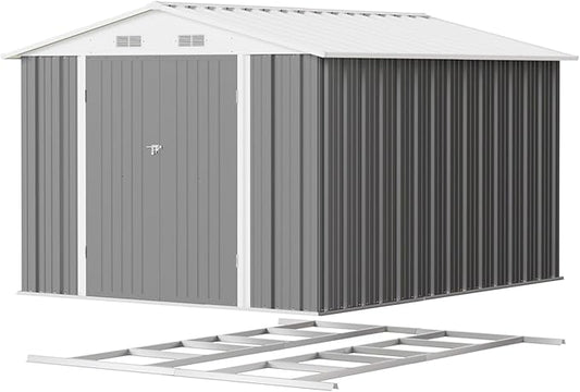 Patiowell 8x10 FT Outdoor Storage Shed with Floor Frame, Large Garden Tool Metal Shed with Sloping Roof and Double Lockable Door, Outdoor Shed for Backyard Garden Patio Lawn,Grey