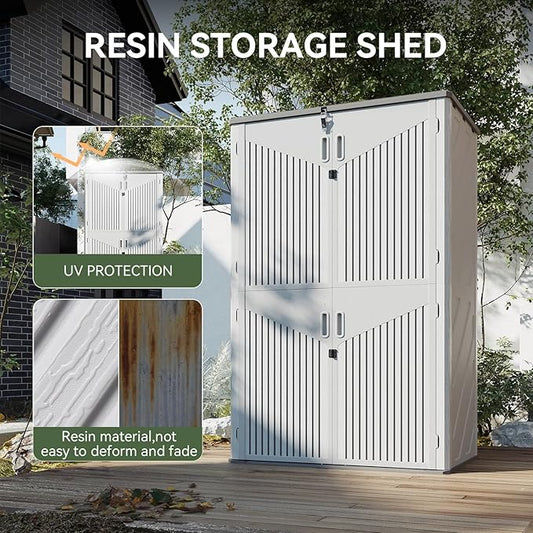 Greesum Outdoor Storage Cabinet Without Shelves, 45 cu.ft Outdoor Waterproof Storage Shed for Garden Tools, Pool Storage, Garbage Cans, White