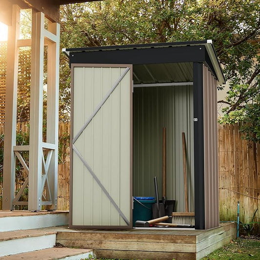 Greesum Outdoor Storage Shed 5 x 3 ft. Utility Tool Shed Metal Storage Garden Shed with Door & Lock for Patio Storage, Brown
