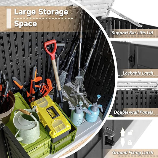 Devoko Resin Outdoor Storage Shed, 34 Cu Ft Outdoor Storage Cabinet Without Shelf, Waterproof, Double Locks, Resin Storage for Trash Can, Garden Tools, Pool Supplies (Black)
