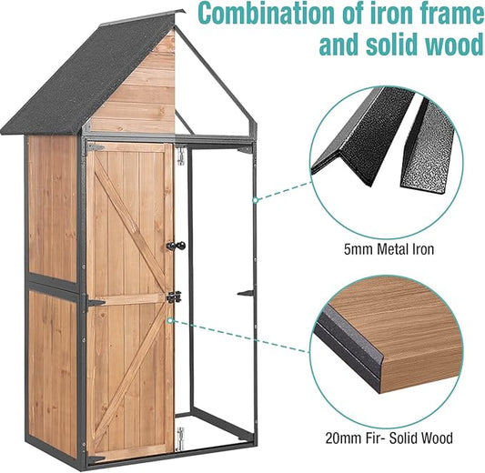 GUTINNEEN Shed Outdoor Storage Upgraded with Durable Metal Frame Garden Shed Tool Storage Cabinet with Wooden Floor Adjustable Shelfs 2.5 x 1.4FT (Brown)