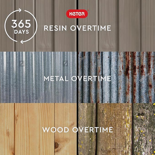 Keter Factor 8x8 Foot Large Resin Outdoor Shed with Floor for Patio Furniture, Lawn Mower, and Bike Storage, Taupe & Brown