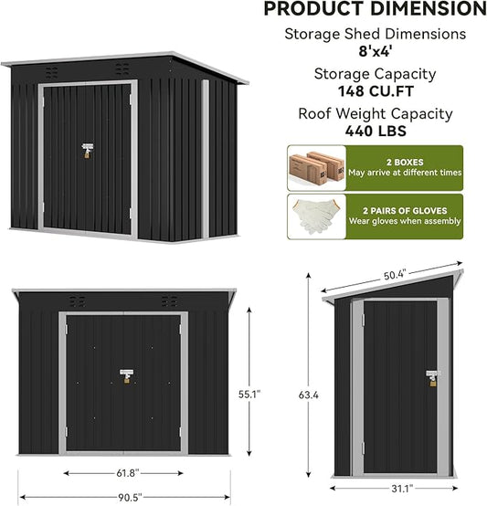 DWVO 8x4 FT Outdoor Weatherproof Storage Shed, Secure Metal Bike Shed w/Lockable Entry, Garden Storage Solution for Lawn Equipment, Tools, Waste Bin, Dark Gray