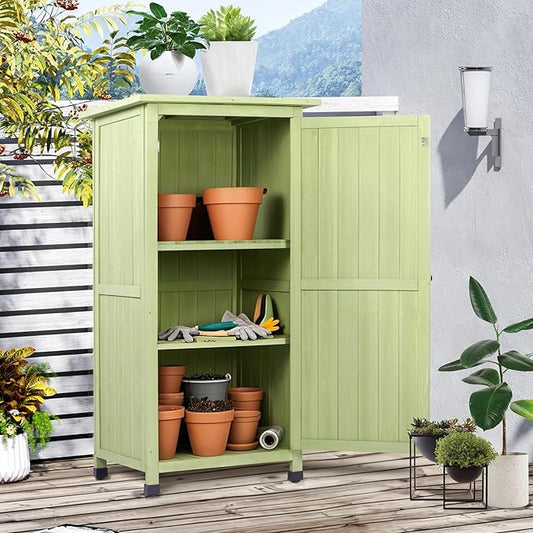 Wooden Outdoor Storage Cabinet, Vertical Garden Tool Shed with Waterproof Metal Roof & 2 Adjustable Shelves Ideal for Yard, Patio, Deck and Porch (Green, 20" x 24" x 48")