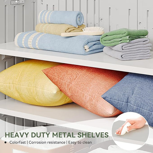 Aoxun 35 Cu.Ft Outdoor Storage Shed with 2 Shelves and Floor, Waterproof Horizontal Resin Cabinet for Trash Cans, Lawn Mowers, Generators, and Garden Tools, White