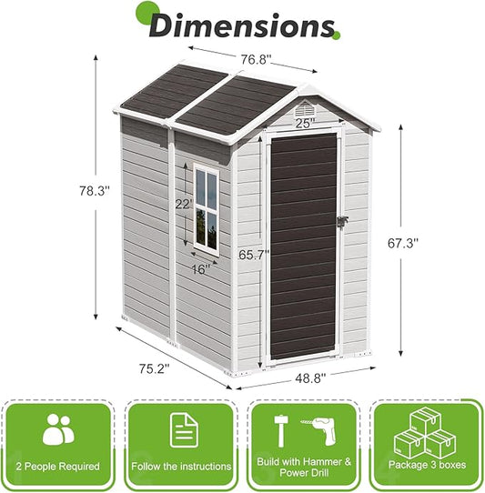 5x4 Shed Resin Outdoor Storage with Floor Included, Waterproof Lockable Small Plastic Garden Tool Shed Cabinet